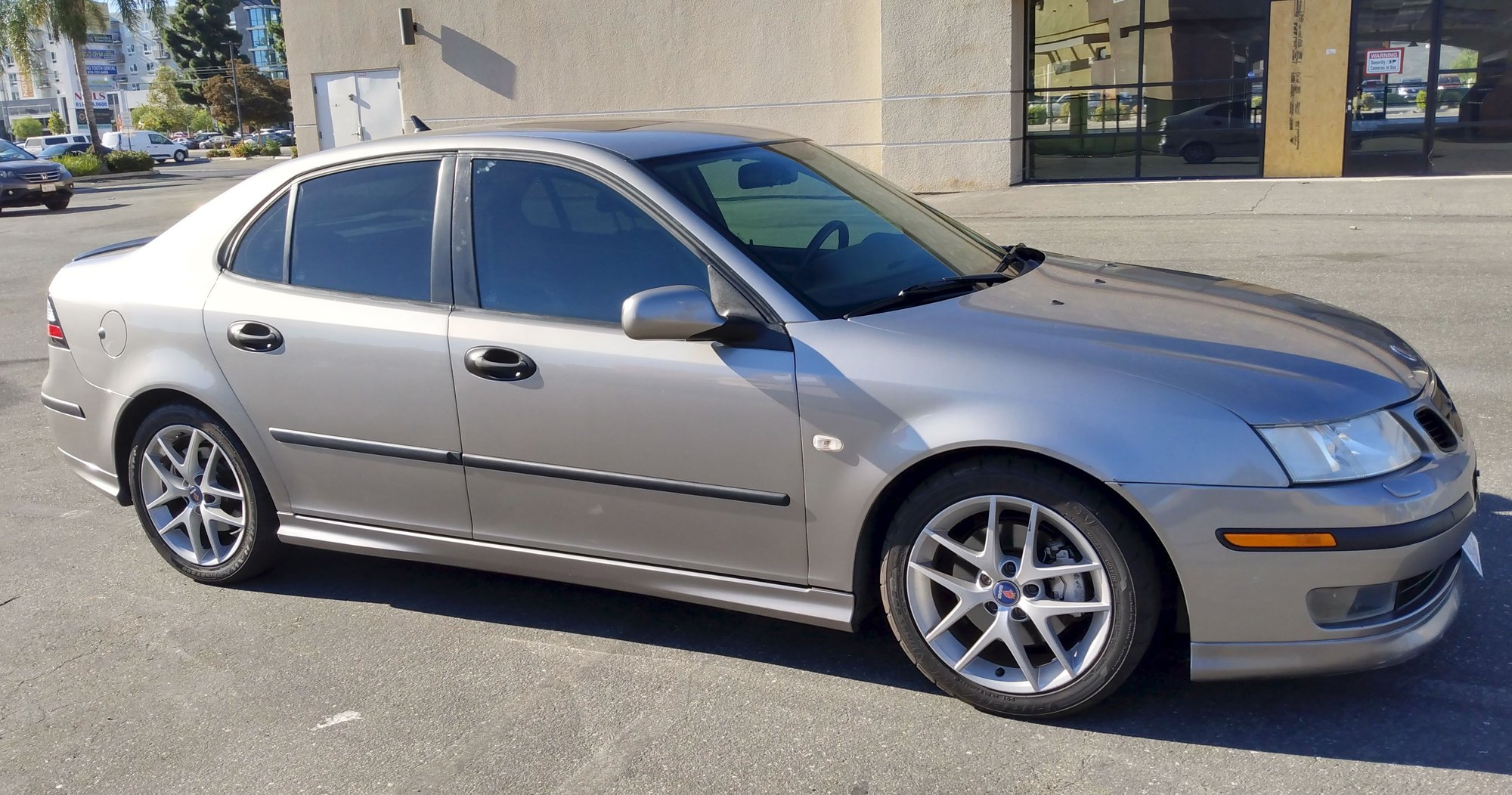 This gorgeous Premium Package 2003 Saab 9-3 Aero Sport Sedan FWD in bullet-gray paint is