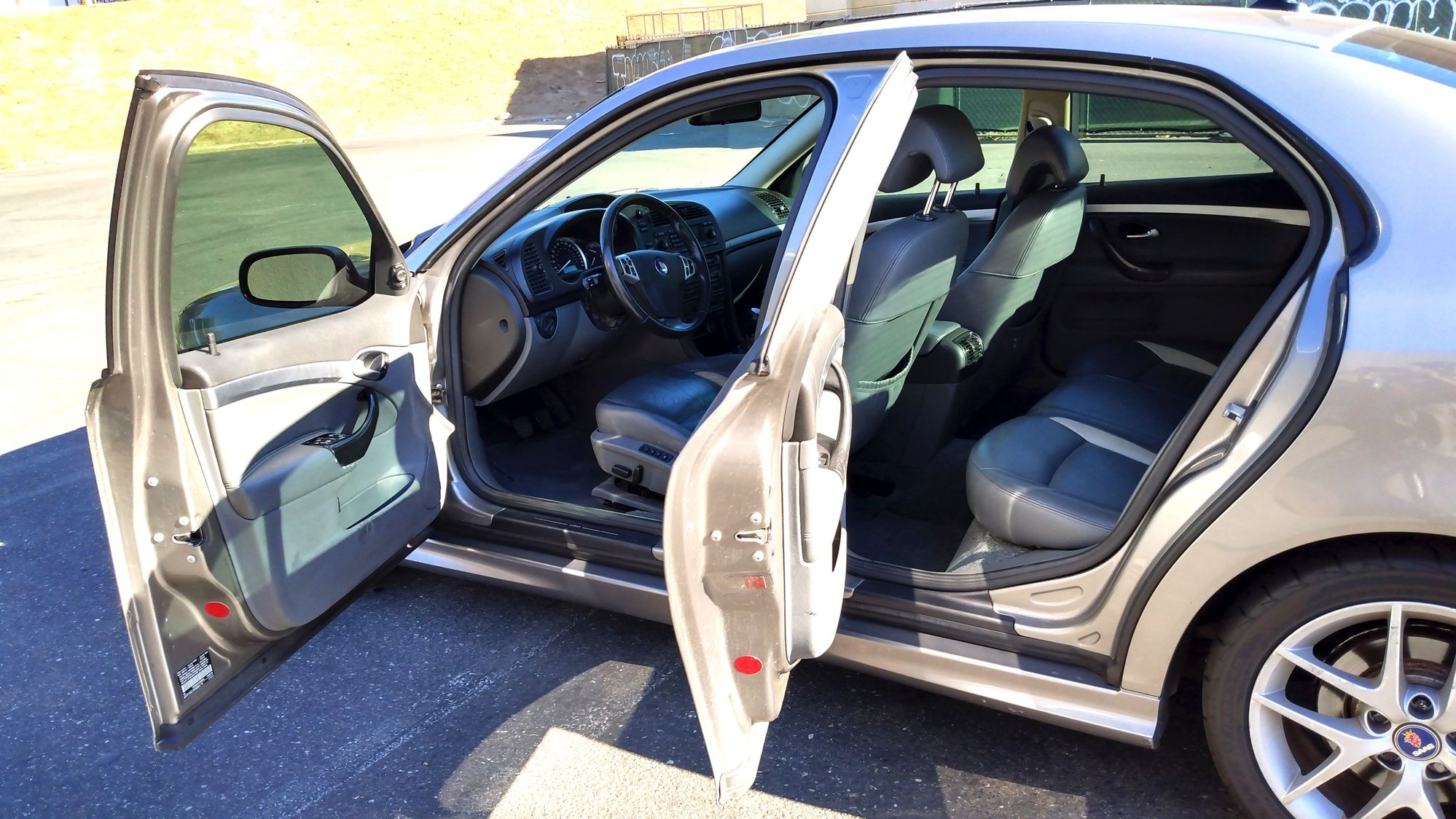 going to turn heads wherever you go! Gas saving by a 2.0L 4-Cylinder Turbo + Intercooler generating 210 hp paired with a 6 Speed Manual transmission w/OD. This front-wheel drive 5 Seater Sedan offers 22/31mpg on EPA city/highway MPG while showing off great-looking sport 17-inch silver wheels and sleek lines. This upscale Sport Package T4 trim sides and front and back spoilers offers features you will love. Enjoy privacy tinted glass, keyfob (all doors) remote keyless entry, all power accessories, 1st row regular express open/close sliding and tilting glass sunroof, leather seat trim (grey & white), driver and passenger Lumbar support, 4-wheel independent suspension, McPherson strut front suspension, multi-link rear suspension, abs all-wheel, anti-theft system, front air conditioning, dual-zone automatic, driver and front passenger heated-cushion, heated-seatback Heated front seats, power door locks, cruise control, leather interior, power steering, tilt wheel, 150-watt audio output with 13 speakers XM AM/FM/Satellite, seek-scan Radio stereo, CD/MP3 player, Bluetooth, side airbags, F&R side airbags, bright white headlights and daytime running lights. This luxury Saab even has a multitude of safety features! Check out the dual front side-mounted airbags, heated mirror, windshield wipers - rain-sensing, front and rear head airbags, stability control, traction control, Child seat anchors, rear door child safety locks, 4-wheel ABS, front and rear ventilated disc brakes, Emergency braking assist, electronic brake force distribution, auto delay off headlamps, daytime running lights, front fog/driving lights, 2 front headrest, passenger head restraint whiplash protection system, rear center 3-point belt, front seatbelt pretensioners, emergency interior trunk release, remote anti-theft alarm system, and engine immobilizer!