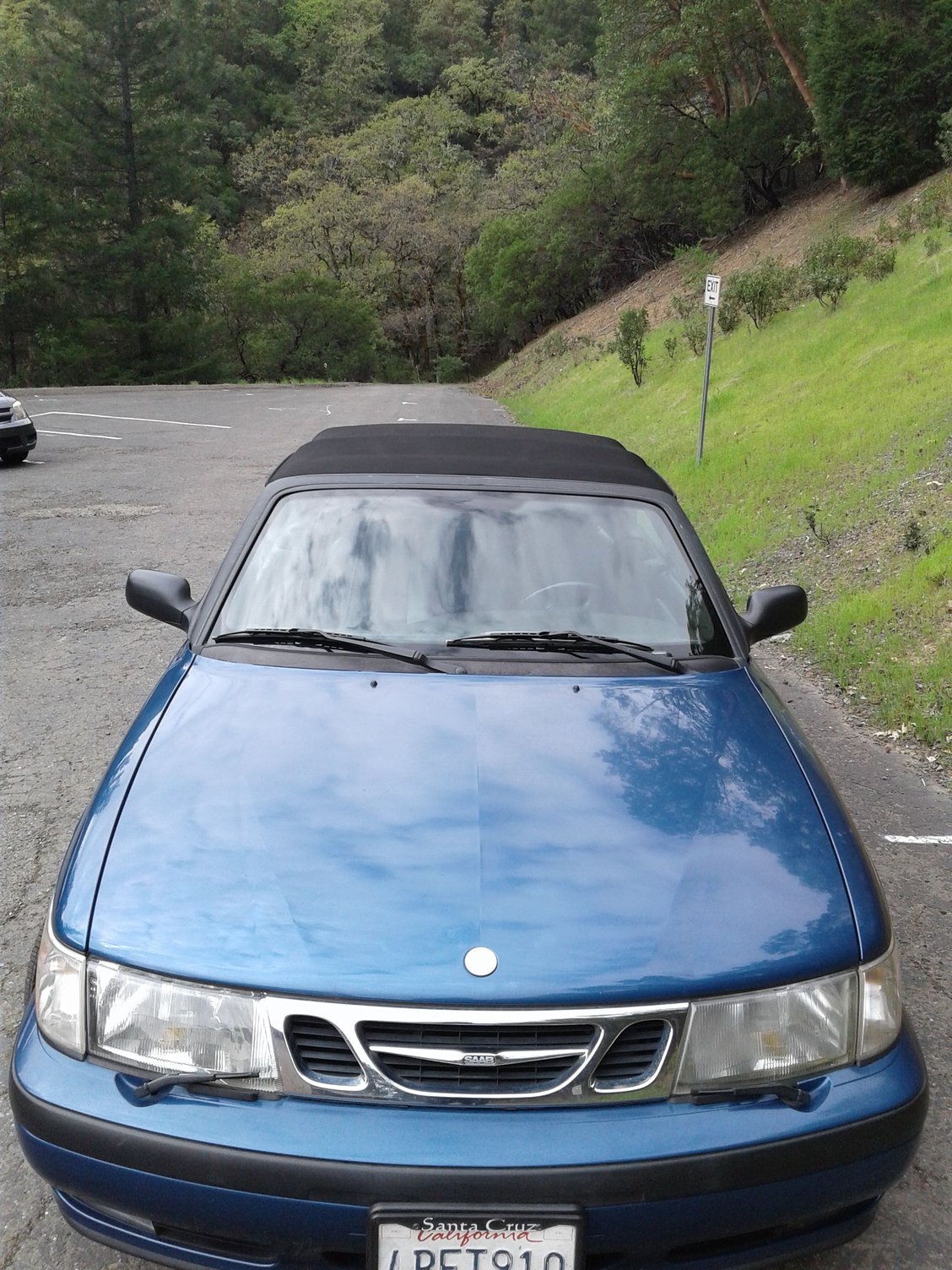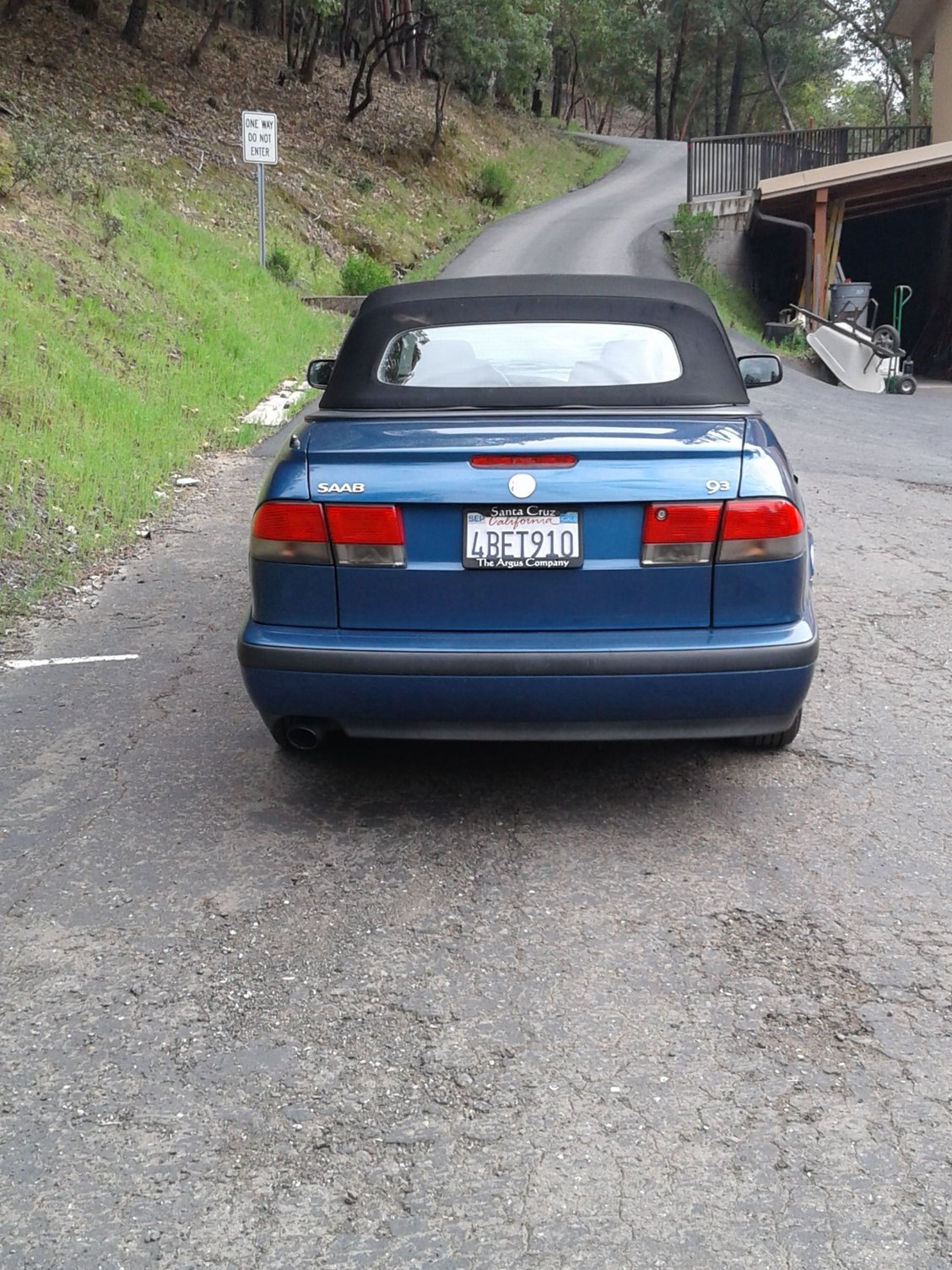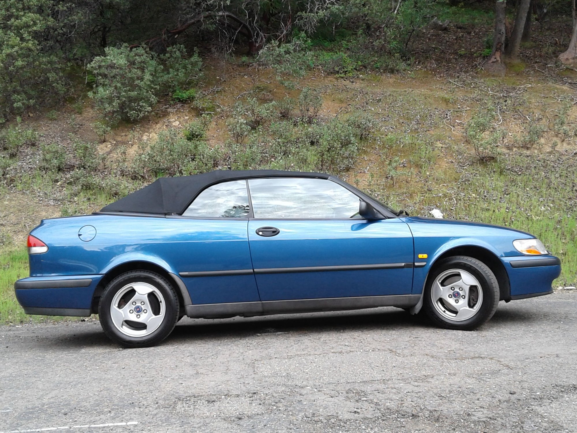 Odometer: 106,326 miles. Automatic transmission. Blue exterior and black leather interior. New tires purchased and replaced September 2018 (Goodyear Assurance Comfor Tred Touring). Just over 3,000 miles driven with the new tires. Leather seats with heated driver/passenger seat options. Driver leather seat has a tear on bottom middle section. Engine/transmission/air conditioning/heater run well. Vehicle history report/title status clean. Serviced at Dan Joel’s trustworthy Saab repair shop, Saab-O-Rama, Santa Cruz, CA. Have receipts for services. Replaced radiator August 2016; replaced ignition switch October 2018; replaced fuel pump November 2018. Convertible soft top leaks water in rainy conditions (though waterproof car cover, which comes with the car, prevents leaking/protects from rain and sun). Soft top mechanism needs work; it remains closed and currently does not open. Besides some general signs of aging, this car is in good condition, runs well, and is a joy to drive.