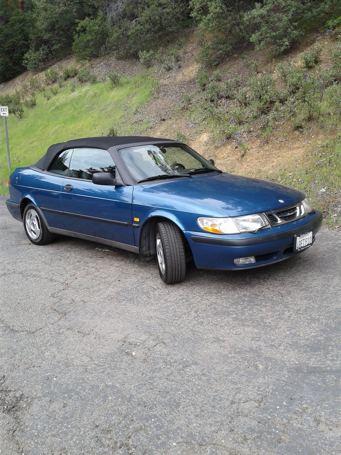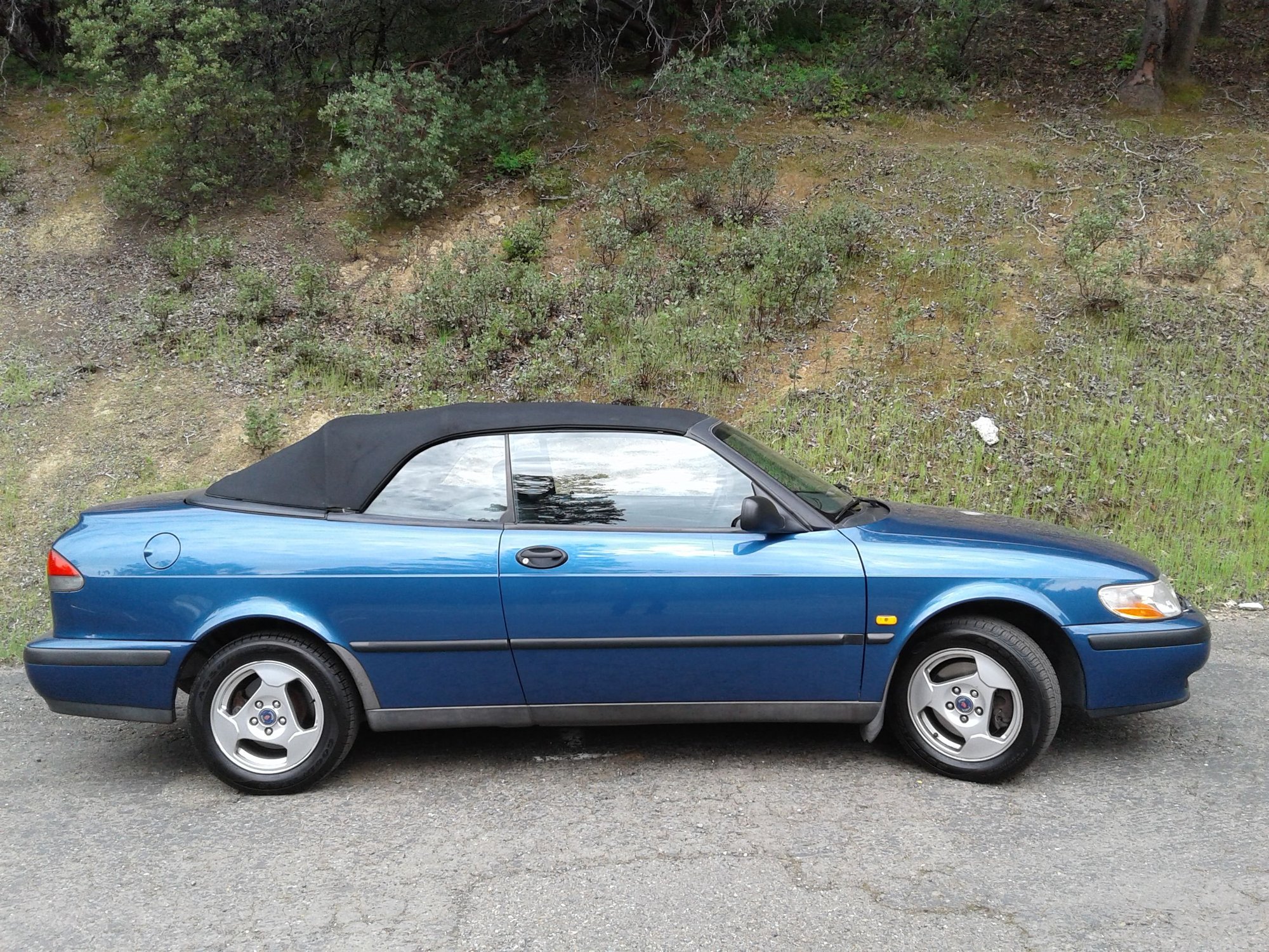 Odometer: 106, 326 miles. Automatic transmission. Blue exterior and black leather interior. New tires purchased and replaced September 2018 (Goodyear Assurance Comfor Tred Touring). Just over 3,000 miles driven with the new tires. Leather seats with heated driver/passenger seat options. Driver leather seat has a tear on bottom middle section. Engine/transmission/air conditioning/heater are in good condition. Vehicle history report/title status clean. Serviced at Dan Joel’s trustworthy Saab repair shop, Saab-O-Rama, Santa Cruz, CA. Have receipts for services. Replaced radiator August 2016; replaced ignition switch October 2018; replaced fuel pump November 2018. Convertible soft top leaks when parked in rainy weather (though waterproof car cover, which comes with the car, prevents the leaking). Soft top mechanism needs work; soft top remains closed and currently does not open. Besides some general signs of aging, this car is in good condition, runs well, and is a joy to drive.