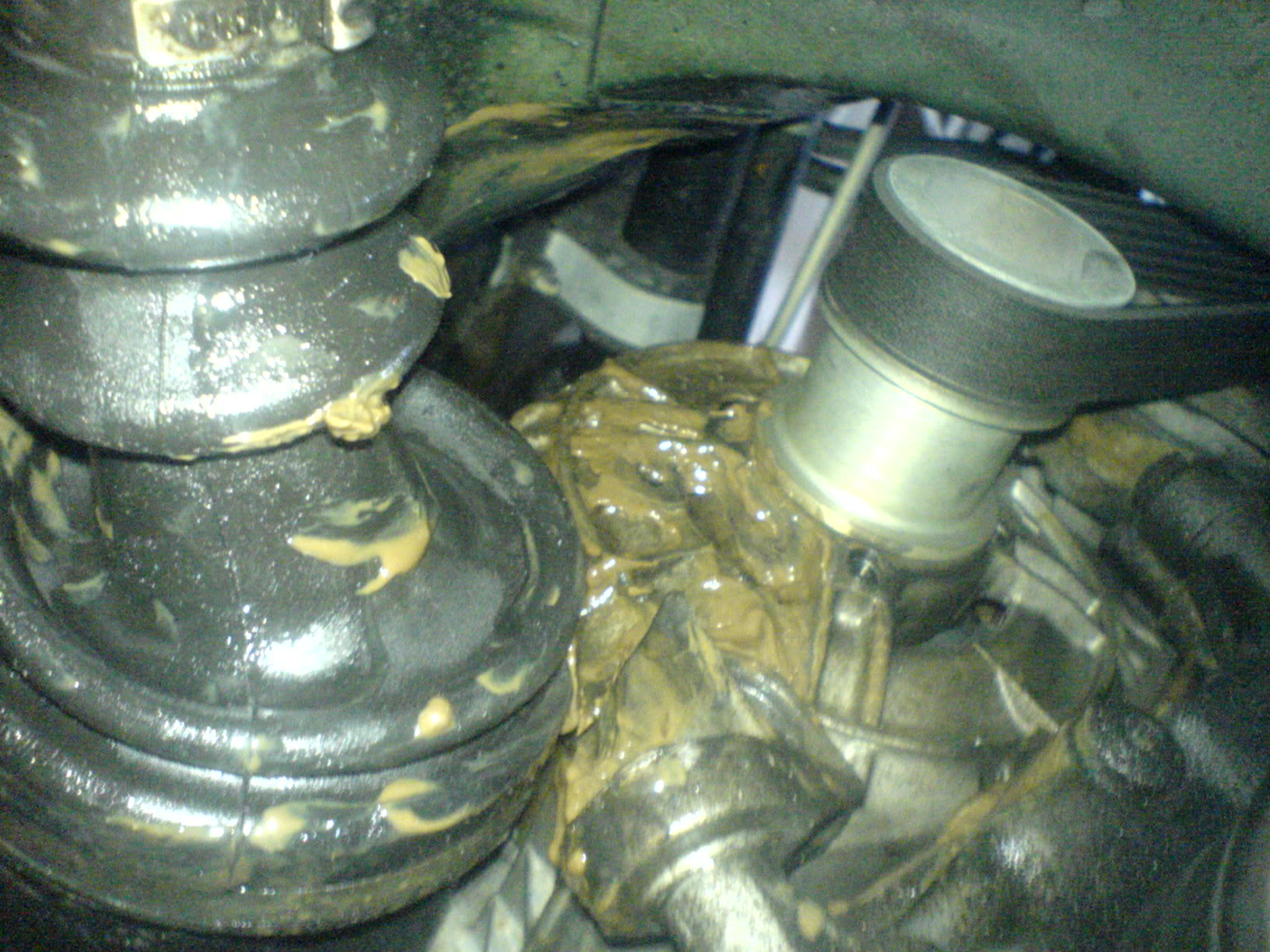And yes, it does seem to be an oil/water mixture. The water probably came from me washing the car, and the oil must have come from inside the car.. although the exact culprit has yet to be revealed. [8D]